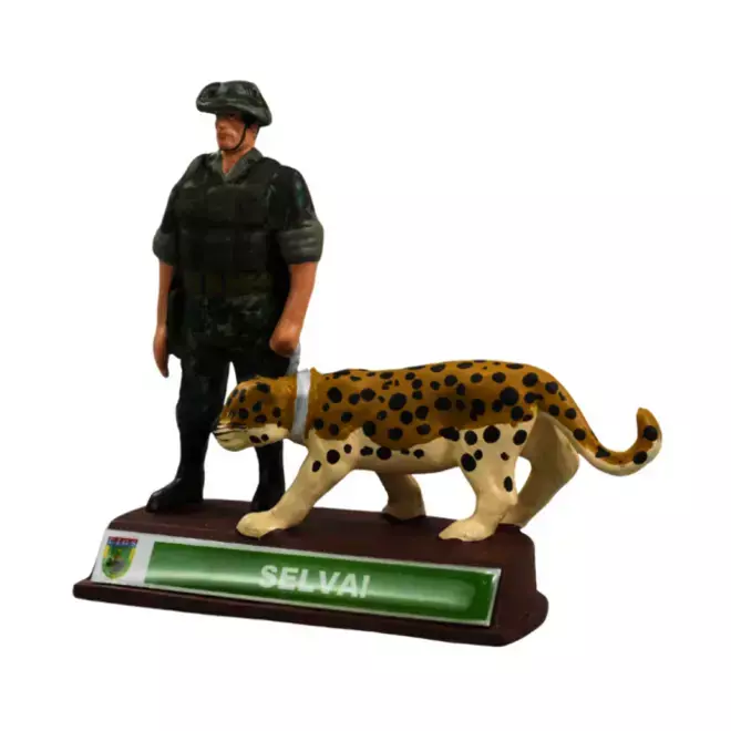 Destaque sua coleção com o Boneco Miniatura Militar Selva com Onça, uma peça realista e detalhada, perfeita para amantes das forças armadas, decoração temática ou presentes criativos. Com 11cm de altura, este boneco é produzido em resina de alta qualidade, retratando um militar do exército brasileiro em traje de selva, acompanhado de uma onça – símbolo de força e bravura na selva amazônica.